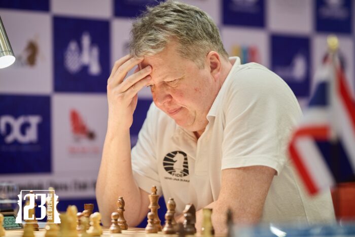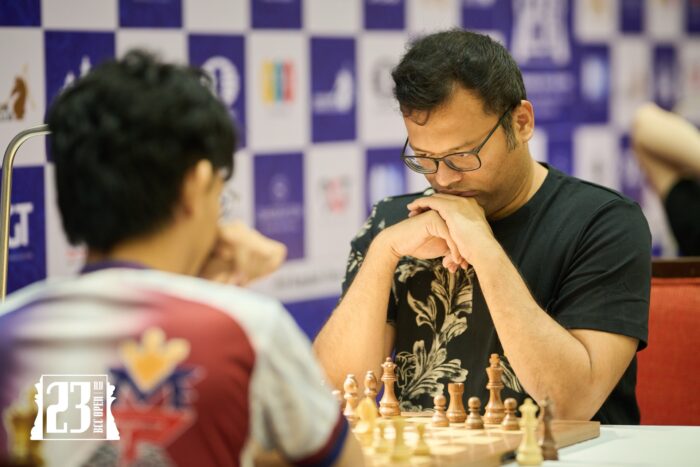 With this result, IM Santosh Ajay becomes co-leader with Dau – a duo which in all fairness wasn’t on many bingo cards when we started the round. These two U-18 talents will face one another in the marquis match-up of round 5, with a peloton of players on 3,5/4 including grandmasters Short, Van Wely, Zhao and Ganguly in pursuit.