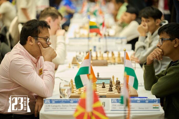 The previous round had left us with ten leaders on a perfect score. As six of them parted amicably, we were left with two decisive results. IM Khuong Duy Dau defeated his colleague Suresh Harsh after the latter dropped an exchange in time trouble after enduring some positional pressure. On board two, GM Ido Gorshtein parted with his fianchettoed Bishop early on, setting the scene for some interesting developments.