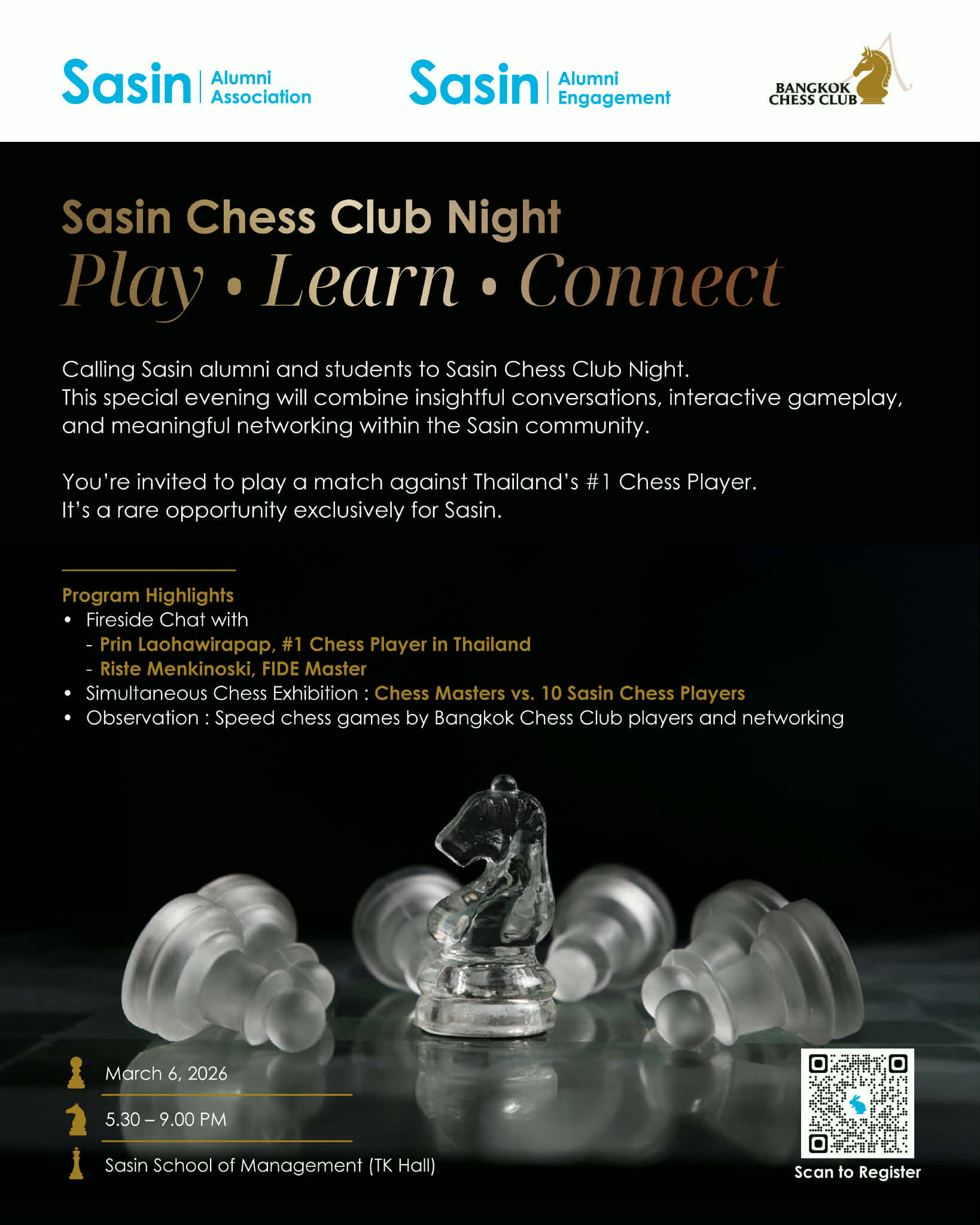 The event takes place at Sasin School of Management (TK Hall) not far from the National Stadium BTS, starting at 5:30. The event is free to join, and should be a lot of fun. Scan the QR code in the poster to register.